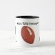A unique and distinctive coffee mug for all football fans. The design features two player silhouettes and a football that standout against the background. Personalize the design with a name. The text is easily changed by using the template. For other desired changes (different type font, color, size or placement OR to rearrange, resize or remove the design elements -- players and football) select "Personalize this design" then select "Edit using Design Tool." Also available in different size mugs. See Options. Note: putting the design on a different size mug may require you to use the Design Tool in order to make the design fit properly. Design Tool is reasonably user friendly, so this is no great problem. Makes a great gift.