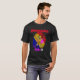 I give wanted to give this a 4 instead of a 5 because these Basic DARK T0shirts run unexpectedly SLIM or Narrow. Which is great if you do not have a potbelly, but I have a paunch. It isn't the shirt's fault that I've got a beer belly. The design and shirt itself is a quality cotton shirt. The color is more of a deep purple, but still a very pretty color. The Basic DARK T-shirts run a bit SLIMMER than the Basic Ts. The neck is a fraction narrower (or seems to be narrower) also. I'm a paunchy middle-aged woman and my neck is 12 inches (31cm) thick and the neckline fell about the same as in the photo of the man, and I had the desire to tug it a bit. So if you're a thick necked man or like loose shirts, be aware these are slimmer shirts. Once I get rid of my lockdown paunch it'll look great. The shirt washed well in cold water with no apparent bleeding. We don't have a dryer, so it hung dry. Did not shrink. Love the colors and the design. The design looks smaller on my shirt than it does on the model on-line. But still, it looks good on the shirt. The printing looks as it does on the model, just the size seems fractionally smaller. Washed garment in cold water, hung dry and design appeared unaffected.