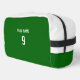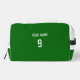 Introducing our sleek emerald green accessory pouch, a must-have for football lovers! With a bold football logo on one side, it shows off your passion for the game. Personalise it by adding your team name or the recipient's name on the other side, making it a special gift. This durable bag is perfect for carrying football gear or as a stylish travel companion.