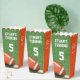 Personalised popcorn boxes for boy's birthday party, personalised the number for age and thank you message on the side with date. Matching product also available in this store.
