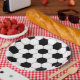 A football pattern on paper plates. Great for football-themed parties such as birthdays, get-togethers and so on.
