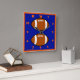 A Football that's bright and colourful that's on a Square Wall Clock.
