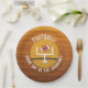 American football personalised paper plates feature a football through the uprights on brown to gold stripes. See MATCHING invitations and more in our collection.