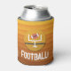 Football game day personalized can coolers for beer and soda cans and bottles feature gold, orange and brown stripes and a football sailing through the uprights. Perfect to give to your party host or give as party favors for the big game. Change the wording, the font, and the font color using the easy Customize further link. MATCHING invitations, plates, napkins, coasters and more in our store.