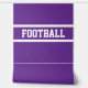 This modern sporty design features athletic white FOOTBALL text highlighted with floating white horizontal racing stripes against royal purple background. The colours and text in this design can be personalised.