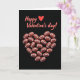 This card features a heart shape built from many tiny American footballs, arranged evenly like a careful mosaic against a deep black background 🥰. Each football is reddish-brown with bright white laces, and soft shading along the curved sides makes them look rounded and touchable. The heart feels like a sweet nod to someone who loves the game, as if two people are sharing a quiet grin over an inside joke ❤️. Near the top, the text “Happy Valentine’s day!” sits centered in coral red, standing out clearly against the dark space. Right beside the words is a small solid red heart icon that echoes the bigger football heart below. The wide black area around the design keeps the focus on the heart and the message, giving the layout a calm, modern look. The football heart sits in the lower half of the front, with the laces and highlights repeating in neat rows to form a crisp, symmetrical outline.