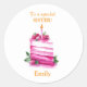 For a Special Sister Pink Yellow cake Birthday Classic Round Sticker