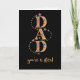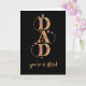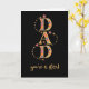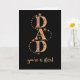A stylish Father's Day greeting card for your father, with the word, 'DAD' in outsize letters, filled with brightly coloured star patterns with gold-effect outlines. The three letters, 'DAD', are arranged vertically on the black background with swirls of small stars trailing around them. Beneath them the words, 'you're a star!' are in an informal, handwritten script, also in gold-effect. The inside message is just a suggestion and you can easily change it or delete it if you wish.