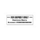 For deposit only is at the top. In the middle, you can add the business name. At the bottom, there's a place for the bank account number. All text is bold and can be edited or deleted.