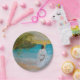 Beautiful inspirational paper plates of Jesus Christ walking on the beach. In the sand is part of the famous scripture"For God So Loved The World." (John 3:16)