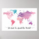 Elegant Christian biblical print. This beautiful multi-colour watercolor world map features the biblical declaration from John 3:16 in elegant calligraphy typography design, "For God So Loved the World"