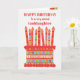 You can add the age to this brightly coloured birthday card for your goddaughter, with a strawberry birthday cake. The cake has lots of candles with different patterns and there is a patterned band around the cake with colourful summer fruits - strawberries, raspberries, limes and orange slices. Above the cake, the greeting, in red lettering, is 'HAPPY BIRTHDAY to a very special Goddaughter' and on the cake there is a space for you to add the age, followed by 'years old today!' in white lettering. Please feel free to customize the inside message if you wish; you can change the font and the colour as well as the message.