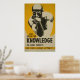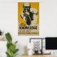 Vintage WPA poster promoting library use, showing a man in a pose based on Rodin's "Thinker".