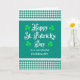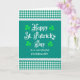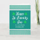 A pretty, country-style greeting card for St Patrick's Day for your husband, with green and white check gingham panels at the top and bottom, edged with white faux lace. The front cover greeting is, 'Happy St Patrick's Day' in white vintage lettering on the dark green background with four lighter green shamrock leaves at the four corners and, 'to a wonderful HUSBAND' in white capital letters below. The inside message is just a suggestion and you can easily change it or delete it if you wish.