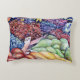 The cushion is small to medium sized. It can be washed. It is well constructed. The material used is pleasant and feels decent quality. It has a very slight plush feel which is good. It is well labelled and its care clearly stated. Theres nothing not to like about it. All in all a good item. The deduction of one star overall is due to long delays in delivery to the UK. It's not clear if this was due to Zazzle or somewhere else in the chain as I did not receive status updates of dispatch or progress. I cannot comment anymore on that other than to say that was our experience but it may not be the same for you. The printing was surprisingly close to what we were expecting. Its an art piece and on material so its hard to assess the precision of printing but it seems close to the original. The soft lines are reproductions of the original. The colour is a fair reflection of the painting. This was printed in the US and it looks like US quality. No issues.
