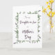 Send a special greeting to your daughter-in-law on Mother's Day. This greeting card features the message "For my Daughter-in-Law on Mother's Day" on the front in purple script lettering inside a frame of green leaves and purple flowers. Inside you'll find coordinating illustrations and a message that can be customised with your own greeting.