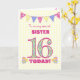 For Sister 16th Birthday Primroses Bunting Card