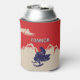 Create a fun personalised gift for your favourite snowmobiler. They'll love keeping their drink as cold as ice with this snowmobile themed can sleeve. It has a vintage style illustration of a snowmobile and rider in navy blue set against a backdrop of cream or ivory coloured mountains against a red background. It's ready to be personalised with a name in cream and blue coloured lettering. The same graphic and text appear on both sides.