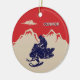 Create a personalised gift for your favourite snowmobiler. This Christmas tree ornament has a vintage style illustration of a snowmobile and rider in navy blue set against a backdrop of cream or ivory coloured mountains against a red background. It's ready to be personalised with a name in cream and blue coloured lettering.