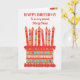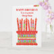 You can add the age to this brightly coloured birthday card for your stepson, with a strawberry birthday cake. The cake has lots of candles with different patterns and there is a patterned band around the cake with colourful summer fruits - strawberries, raspberries, limes and orange slices. Above the cake, the greeting, in red lettering, is 'HAPPY BIRTHDAY to a very special Step Son' and on the cake there is a space for you to add the age, followed by 'years old today!' in white lettering. Please feel free to customize the inside message if you wish; you can change the font and the colour as well as the message.