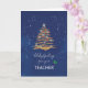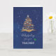 Surprise a beloved teacher with this beautiful card come the Christmas season. The card front can be seen having a gold-coloured Christmas tree surrounded by sparkling stars that all stand out from the navy blue coloured background. Perfect card for the holidays.