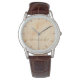 The watch looks really great! Very sharp and well done. The leather band is really nice, though for a man's watch I think it should be longer. Unfortunately, it isn't big enough for my husband's wrist but I will get a replacement because he is very excited to wear it!