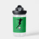 If your youngsters love Soccer here is the water bottle for them. This simple silhouette is on a green background with an image of a soccer ball. You can add your own text and colours.