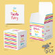 A simple candy-striped pattern, to give it a colourful, pop of colour. "For the Tooth Fairy" on the top, personalised name and thank you, blank spaces to handwrite and fill in, which tooth fell off and to date it, messages for tooth fairy... all the sides filled with fun, adorable cuteness. Interactive, engaging and loads of fun.