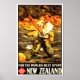 Vintage New Zealand travel poster promoting fishing and outdoor sports.
