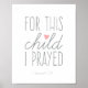 Nursery art print of the Bible verse "For this child I prayed...1 Samuel 1:27". Features hand-written fonts and a little pink heart. Contact us if you need this design applied to a specific product to create your own unique matching item or gift! Thank you so much for viewing a DoodleLulu by 2 june bugs design!