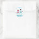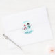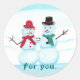 Painting of happy snow people waving hi, with, For you, printed on gift stickers. Stickers are glossy.