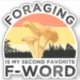 Foraging Is My Second Favourite F-Word. This funny vintage distressed chanterelle mushroom design is a great mushroom hunter gift for a man or a woman who loves foraging, hunting and finding edible fungi like morels and chanterelles. Do you love to hunt for mushrooms? Are you into mycology, or are a mycologist? If you love going out into nature to forage & find mushrooms, this accessory is perfect for you! Has distressed graphic of chanterelle mushrooms set against a retro sunset.
