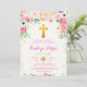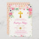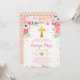 This floral Baptism Invitation is adorned with gold touches and watercolor flowers that are arched over a gold cross. All together makes the perfect invitation for your beautiful Baptism celebration!