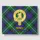 Clan Forbes crest badge surrounded by a strap and buckle over tartan background. Custom front, back and spine text.