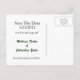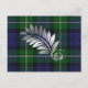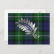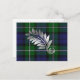 Elegant wedding save the date post card done in the traditional Forbes green and blue tartan plaid. Lovely graphics of silver tone fern with the Koru symbol decorate the front of the plaid card. All text, on the back of the card, is fully customisable to read what you want.