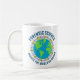 Beautiful forensic scientist mug gift that reads Forensic Science Makes the World Go Round around a pretty blue and green globe of Earth. A community of crime scene investigation specialists hold hands in cute rainbow colours around the planet.