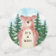 Cute baby boy design featuring a brown bear with a green spruce forest and watercolor blue sky. Easy to personalise with your information. Visit our shop to view our entire forest adventure bear collection.