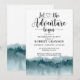 Let the adventure begin watercolor forest mountains retirement party invitation. Rustic theme. Blue green watercolors.