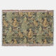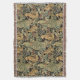 FOREST ANIMALS ,FOX, PEACOCK, HARE IN GREEN FLORAL THROW BLANKET