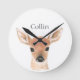Forest Animals Watercolor Deer Name Nursery Round Clock