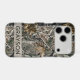 Customise this forest branches camouflage iPhone 17 pro case with your name in a trendy modern CAP font in grey on opaque cream. It's masculine and perfect for your favourite military, hunting, country or outdoorsman!