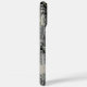 Customise this forest branches camouflage iPhone 16 pro max case with your name in a trendy modern CAP font in grey on opaque cream. It's masculine and perfect for your favourite military, hunting, country or outdoorsman!