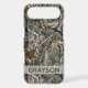 Customize this forest branches camouflage iPhone 17 air case with your name in a trendy modern CAP font in gray on opaque cream. It's masculine and perfect for your favorite military, hunting, country or outdoorsman!
