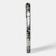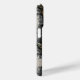 Customize this forest branches camouflage iPhone 15 pro case with your name in a trendy modern CAP font in gray on opaque cream. It's masculine and perfect for your favorite military, hunting, country or outdoorsman!
