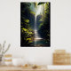 Discover the enchantment of a beautiful waterfall nestled in a charming forest, surrounded by lush green flora. The jungle is so dense and vibrant that only a small part of sunlight filters through, adding to the allure of the scene. Immerse yourself in the tranquillity of this picturesque digital art, where the captivating waterfall and the abundant greenery create a mesmerising symphony of nature's wonders.