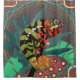 Illustrated panther chameleon with Madagascan rainforest background. Originally drawn in ink.