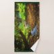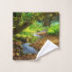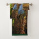 Towel set with a bright green forest with a pretty winding creek. Brown leaves cover the forest floor, providing a nice contrast with the lush greenery of these magical woods.