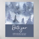 Rustic woodland Bridal Shower design with watercolor smoky winter forest and modern typography layout with elegant fonts. The text can easily be personalised for a unique one of a kind design for your special day