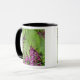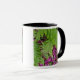 Forest ferns with pink flower petals on ground mug
