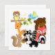 Our Forest Friends T-shirts, bodysuits, mugs, bags, cards, wall clocks, keepsakes, magnets, plates, and other items features adorable forest animals including an owl on a branch, a blue bird, brown bear, red fox, skunk, racoon, squirrel with acorn, and a deer!